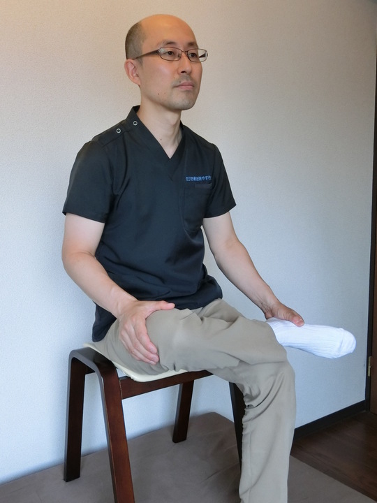 くるぶしが膝の上にくるようにして足を組みます。