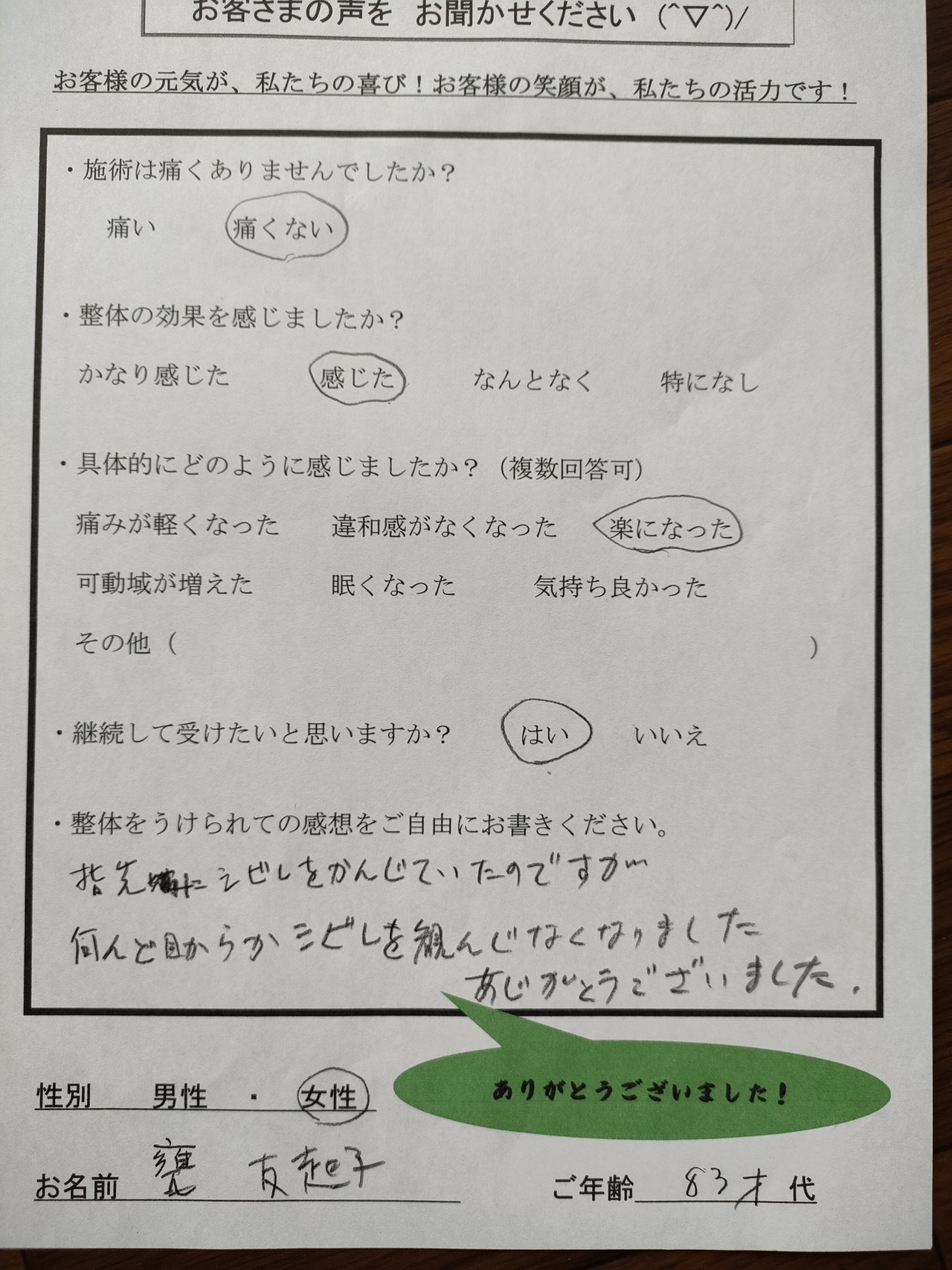 → 痛みが軽くなった/気持ち良かった