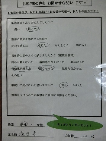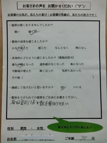 毎回良化しており、数(整体回数)を増加させたい。