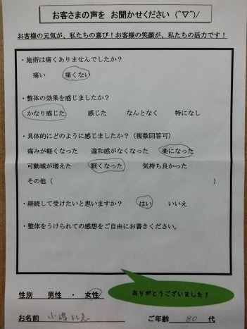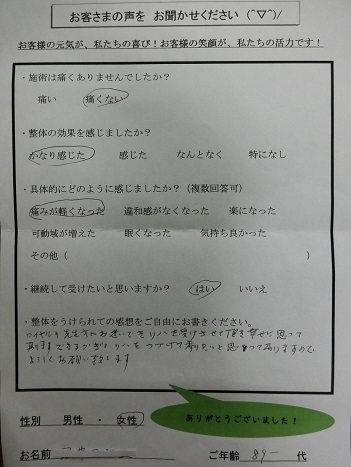 → 痛みが軽くなった/気持ち良かった