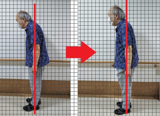 施術前は猫背で背中が曲がっていましたが、1回の整体後は姿勢がだいぶ改善しました。
