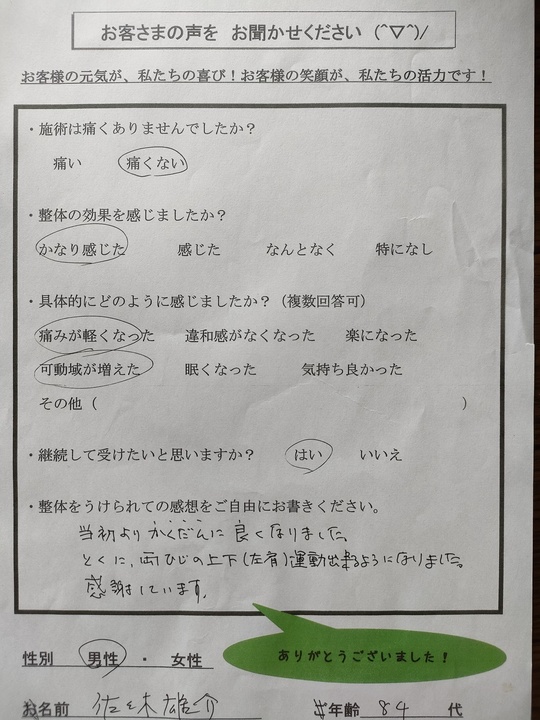 (膝痛が以前より良くなってきているとおっしゃっています。)